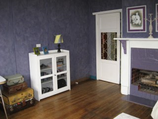 The guest room… the room where I totally stuffed up my colour choices and gave up. I thought the green would be a good colour but it just didn’t work. Maybe if I hadn’t given up and finished it, painting the trims antique white, it would have looked better. Maybe just changing curtains and putting in another light fitting… As it is I didn’t finish it. This is where Bonnard was born. I put the whelping box in the nook beside the built-in wardrobe and slept in that room for the first two weeks of his life.
