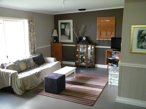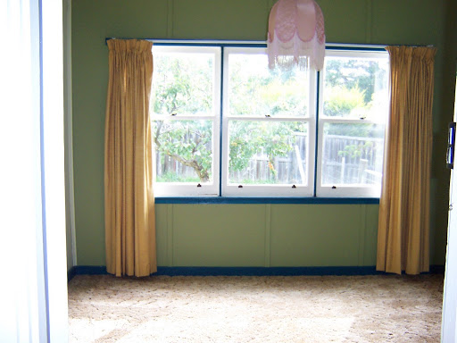 The guest room… the room where I totally stuffed up my colour choices and gave up. I thought the green would be a good colour but it just didn’t work. Maybe if I hadn’t given up and finished it, painting the trims antique white, it would have looked better. Maybe just changing curtains and putting in another light fitting… As it is I didn’t finish it. This is where Bonnard was born. I put the whelping box in the nook beside the built-in wardrobe and slept in that room for the first two weeks of his life.