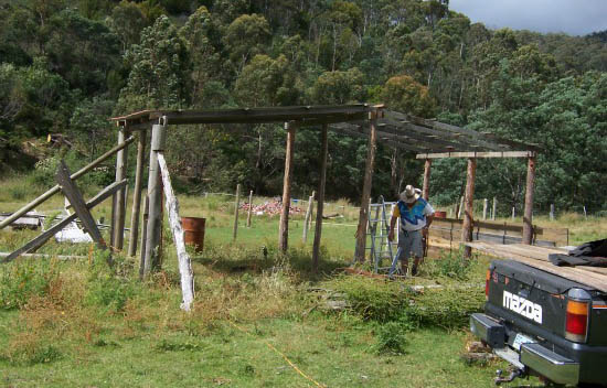 Slowly, over the next few months, Wayne started to rip the old shed apart. He dug holes and put in posts to hold up a new roof for the ‘extension’… only to find the irrigation pipes. Twice. Seems like every single hole that Wayne dug for a few weeks had a pipe going through it. I think we spent more on mending pipes than on anything else during that period.
