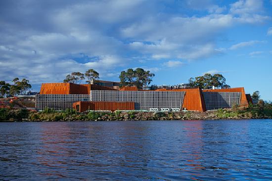 Its a very interesting looking building on the bank of the Derwent River just inside the Moorilla Estate Vineyards. The vineyards are gorgeous, as are the surrounds, the buildings and the views.
