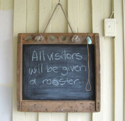 Meanwhile, I’ve resorted to desperate measures. So far its not working. We still have five roosters. On the other hand, no one visits any more. Which could be considered an upside since I’m too busy to entertain.