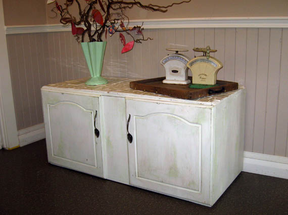 I’d found these old crazed green tiles at a tip shop, very old fashioned. They were the inspiration for the top.