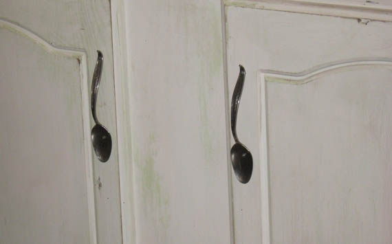 Lastly, the cupboard needed new handles. I got Wayne to make me some spoon handles. Very cute.