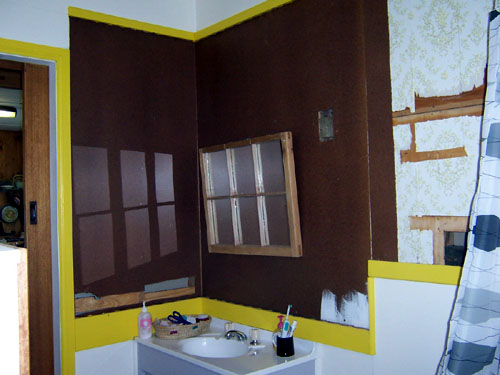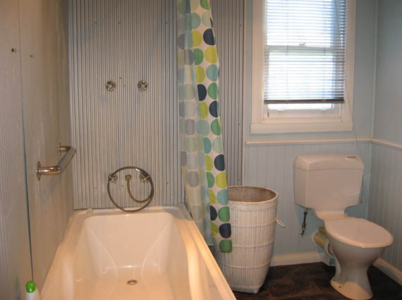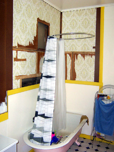 Eventually the bathtub was in place, a large angle rod went up for the curtain and I could finally shower without peeling cold wet curtain off my butt.