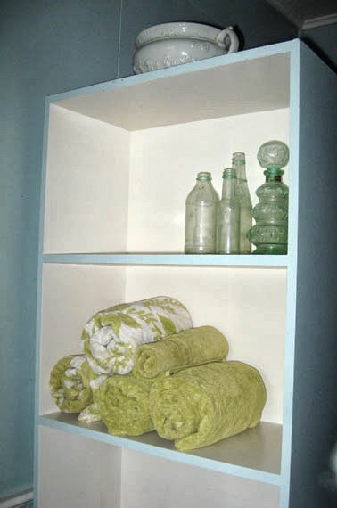 I bought a new shower curtain which was perfect for the new colours and painted my old cane laundry basket white. All that needs now is lining made from blue and white ticking. Lovely.