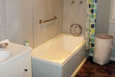 You may notice I also clad certain areas around the tub and the walls below the mini orb with old fence palings. Going with that rustic look.