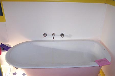 Notice anything? Taps in the middle of the tub… and no shower! Obviously the family of 7 who ‘rennovated’ this house shared the bathwater… eeech. No thanks. I prefer my water running fresh and clean.