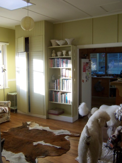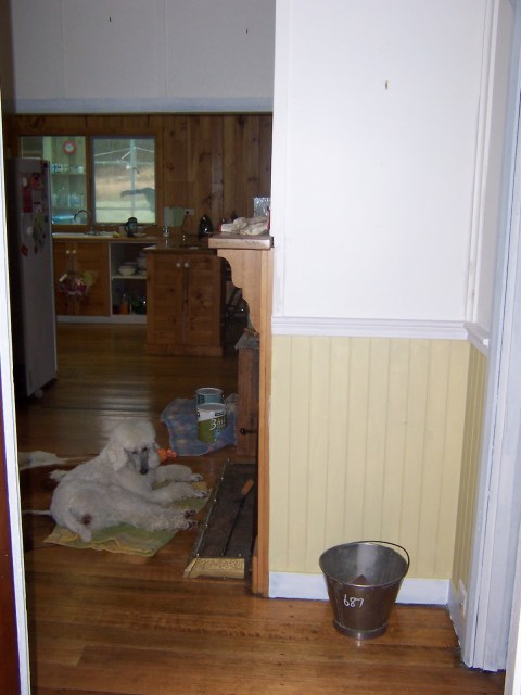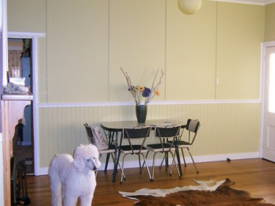 When I started the remodelling in the dining room the pine lining was the first thing to go in, tying the room in with the living room just past the kitchen. The colour I chose in this room was Dulux Vast Escape – I can’t take credit for choosing this colour. It was chosen by Greg, my partner at the time. I looked at it and was not sure at all, but I trusted his tastes in colour. And I love the colour now. In fact I’m wondering how it would look in my current kitchen…