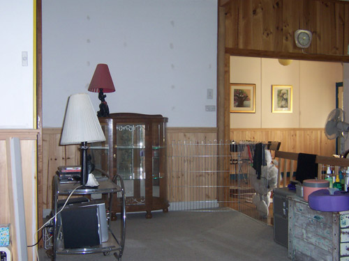 It looked a bit better once I cleaned up, but not much. The dog pen side was to keep the dogs off the floor in the bedroom till it dried.