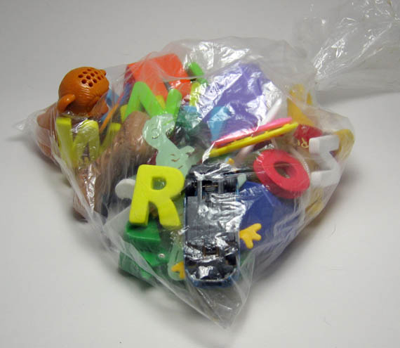 Well, I decided to make one when I found a bag of plastic toys for $1 in an op shop some weeks ago even though I don’t have kids. It looked like so much fun. I added more toys to the collection from other shops till I had enough to make a large chalkboard.