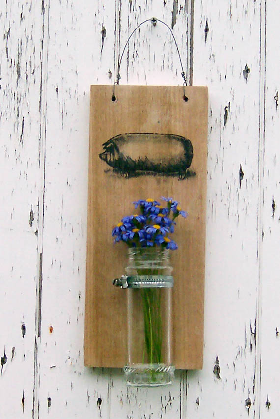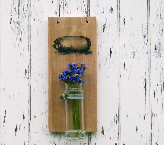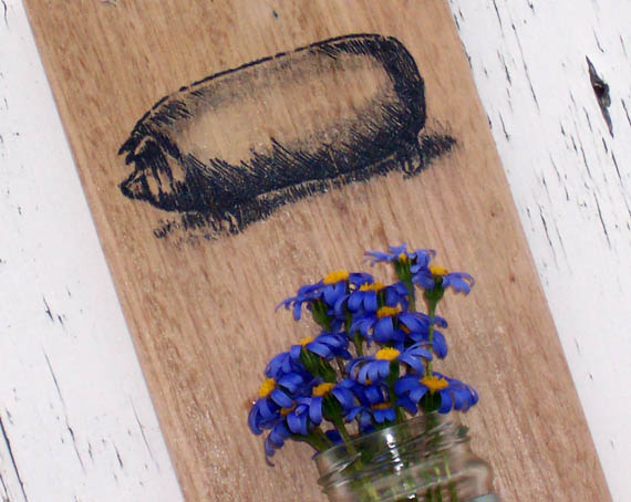 The piggy was perfect. I knew this piece of wood wanted to be a little wall plaque with a vase.