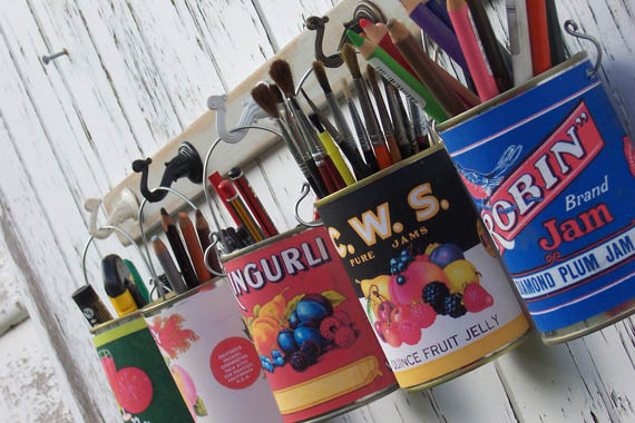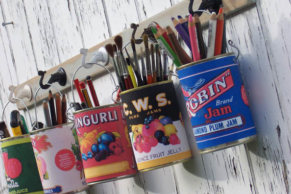 A while ago I saw an image on Pinterest which I just loved. It was a collection of tin cans with vintage evaporated milk labels on them used for storage. I just loved it.