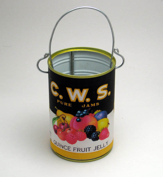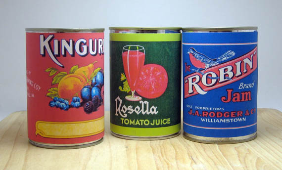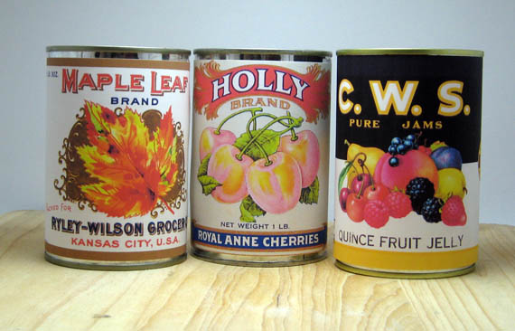 I had tin cans. Doesn’t everyone? I searched online but couldn’t find any evaporated milk labels I could print out. I did find some jam and vegetable labels…