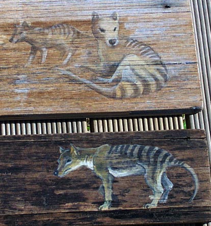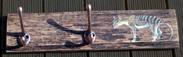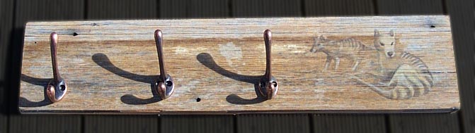 I’ll leave you with some photos of old projects I found while searching for some artwork. When I first moved to Tasmania I’d made a series of Tasmanian tiger objects which I sold through a local shop. Here are a couple of the coat racks made from old barn wood, images painted with gouache and finished with varnish.