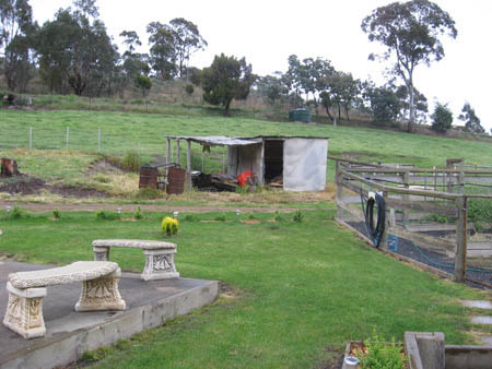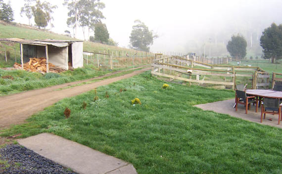 Monday, after a few errands in New Norfolk, we got back to work. This time Wayne cut the timber to size in the paddock using his chainsaw.