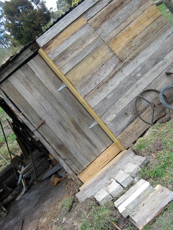In the spirit of using what we have, the hinges have come off a door somewhere, so has the lovely old rusty bolt. And being that Wayne is clever with wire, he made the bolt work with wire to latch it onto.
