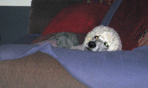 As I work, watching Criminal Minds, CSI, Bones, Grey’s Anatomy, House Husbands… (I multitask ya know) the poodles keep me company by sitting nearby and watching me work.