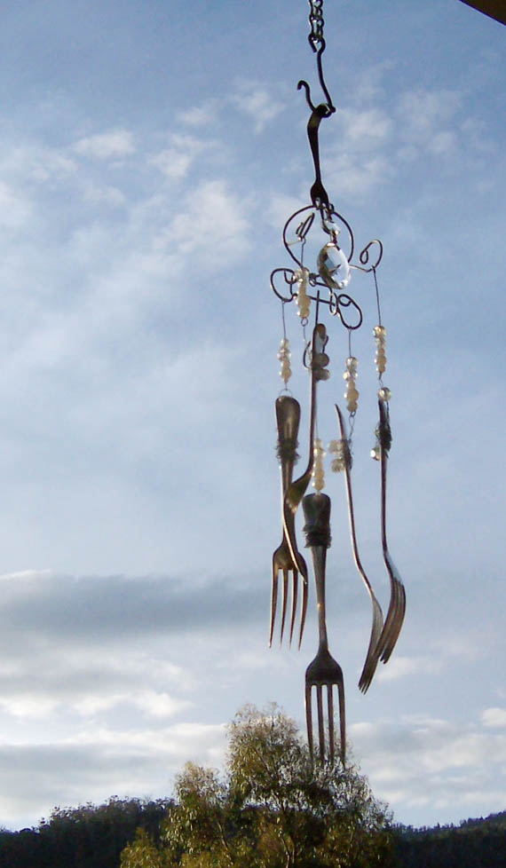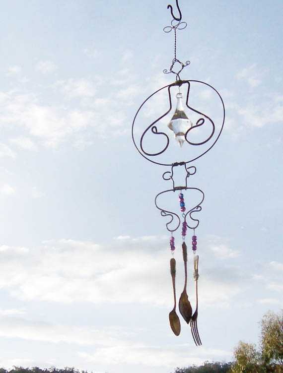 The one below is more of Wayne’s twisted wire shapes, my bling and antique silverware.