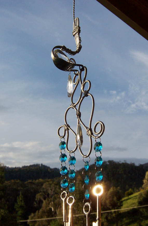 Today its the latest suncatchers and windchimes. These were made for a lady who was interested in buying a few as Christmas presents. She said she may be interested in four but I had to make more to give her a choice.