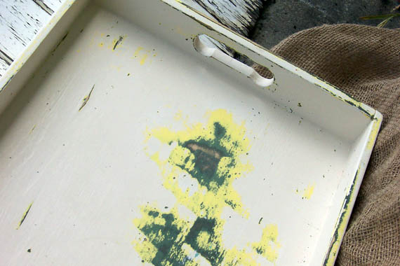 This old tray had been used and abused by the look of it, but with a bit of paint and some elbow grease… it looks just as old and abused! 🙂