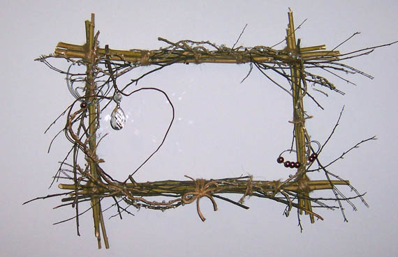 But somewhere along the way something just didn’t work. This is what it looked like back then – willow twigs as the main frame, smaller eucalyptus twigs as the decoration, twisted willow twigs with beads wired around them… Β wire hearts and jute twine.