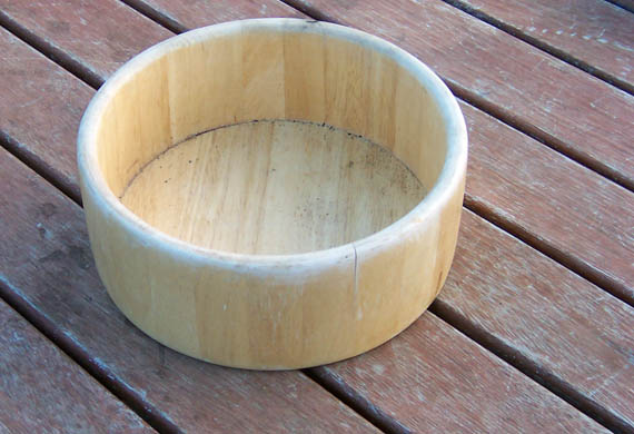 A very large wooden bowl, one of the wooden bowls I’ve added to my project list. This would look great painted and holding fruit on my table…