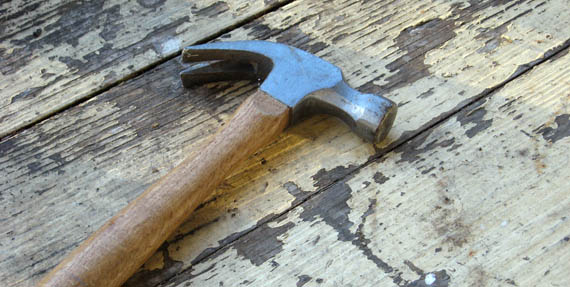 I didn’t do it all. Basically I had only planned to undercoat the beams under the roof and all the new timber of the railing today, but I had a bucket full of the pale grey paint and I had to use it up, right? So I only painted the lower part of the walls till I ran out of paint.
