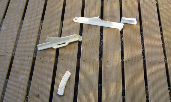 The job wasn’t without casualties… There used to be a shelf on the side of the house which became a bench when the deck was added on. I removed the timber from the ‘bench’ and asked Wayne to remove the brackets for me today. I wanted to use them to move the shelf to above the electrical box under the kitchen window.