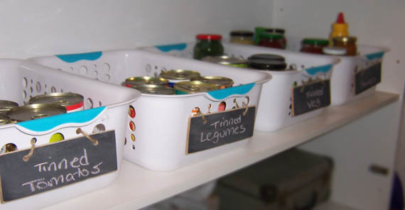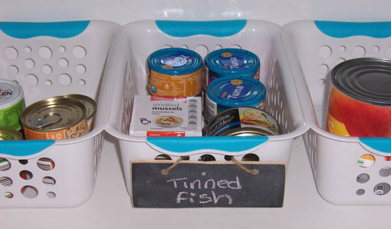 Thing is, I didn’t go with the whole mod podge up to my elbows recycling cardboard boxes to store tinned goods in. I have a collection of boxes I was going to make over into the rolling out type of can storage, but when push came to shove I just couldn’t start a project which would take forever the way things are going with projects around here.