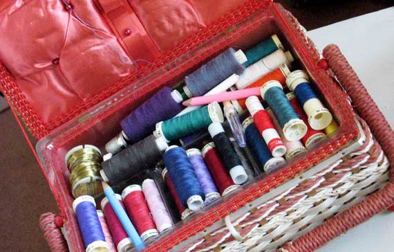 So, last night I sorted through it, re-wrapping unravelled thread, putting aside all the old bits and pieces which I’ll want to use somehow, somewhere, one day. Then I added my own threads into it and viola. A new sewing basket.