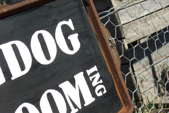 When designing this sign on the computer (I use InDesign for all my type stuff) I found the best way to fit Dog Grooming and an arrow was to be a bit imaginative – hence the sideways ‘ing’.