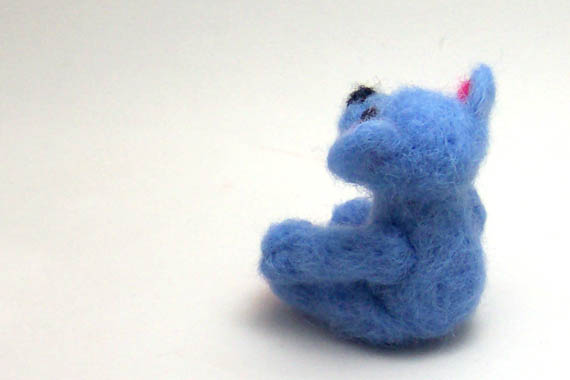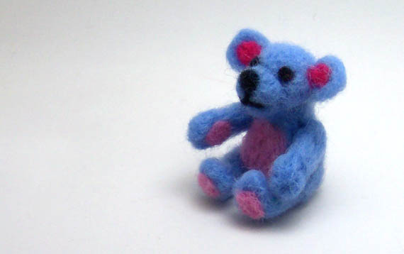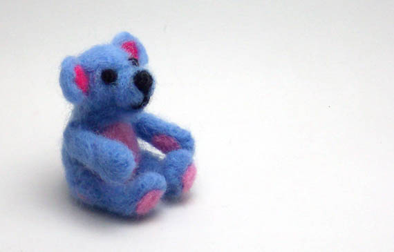 This little blue teddy is something I whipped up this afternoon. I’ve done needle felting before but this time I worked with a single needle and smaller.