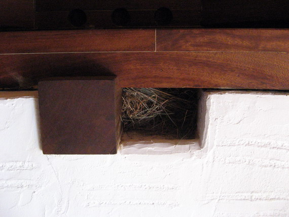 | They even stuffed some straw into the gaps in where the ceiling meets the walls to recreate the bird nests. |