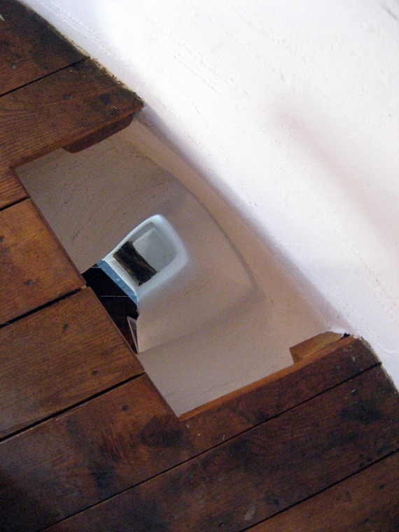 | Holes in the upper floors provided a way to raise and lower sacks from the top level. |