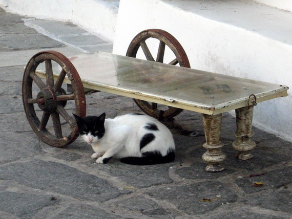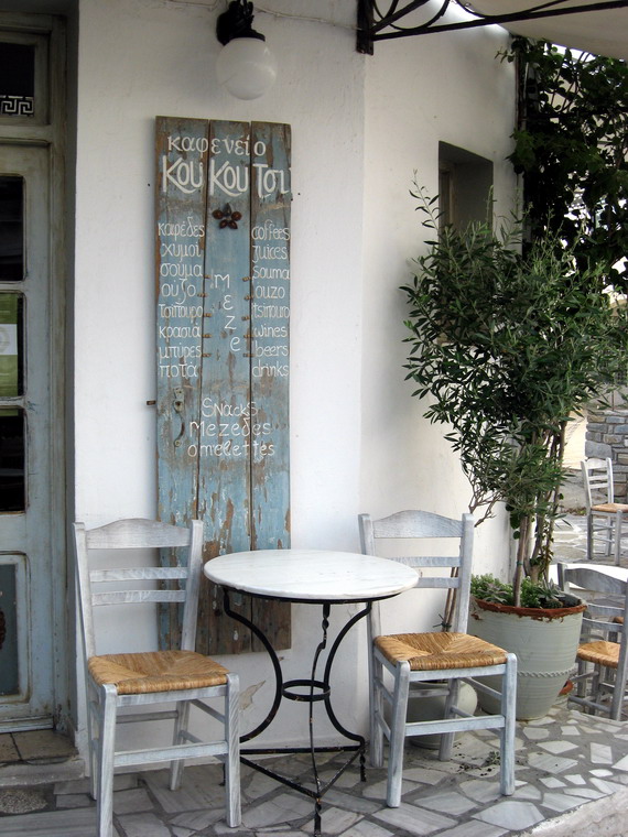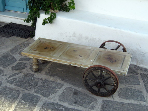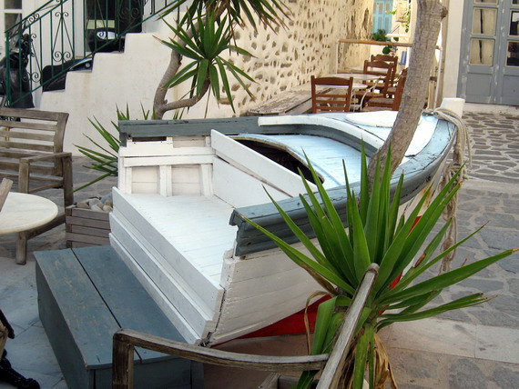 Sometimes its way more elaborate, like the boat/couch at this bar in Parikia.