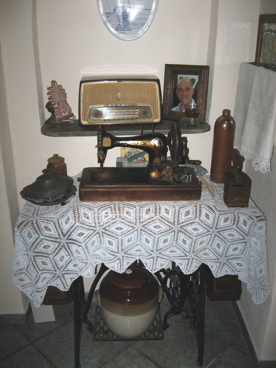 In her house a little down the road, my aunt Dora has a small corner where she keeps her ancient sewing maching, which she still uses, and a few items from her mother’s house.