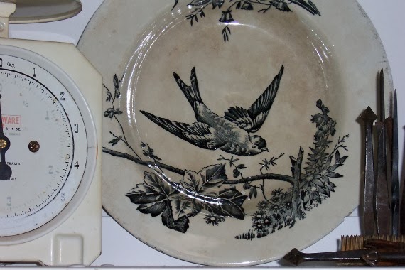 I fell in love with this plate. Its old and crazed like crazy (heheh, sorry), discoloured and chipped. But I had to have it.
