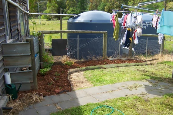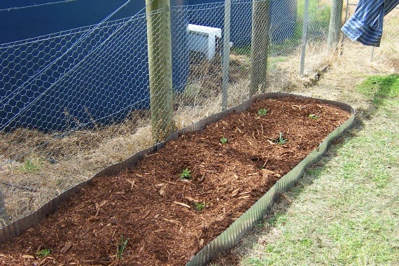 Excuse the washing on the line. This is the new garden bed I got Sharon to put in for me. I wanted to pretty up that area of the yard. I had tried to grow 2 blue plumbagos there before but managed to kill them both. Hopefully the new plants will do better. I have a sort of orange blossom tree (no idea what it is but its not an orange tree) some lupins (no idea what colours), plus my homegrown seedlings including swan river daisies and columbines.