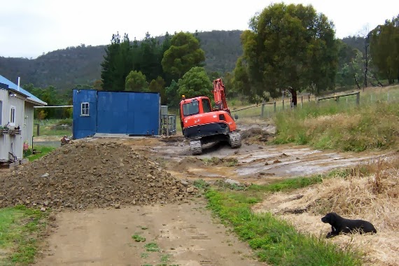 As you already know through my posts on the ducklings, last weekend we had an excavator here digging up the driveway and shoring up the dam.