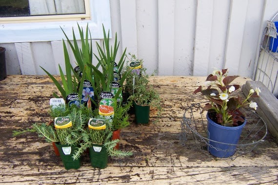 Here’s a sneak peek at some plants I bought for the driveway wall. I’ll re-pot them till they get bigger, then put them in in autumn. That way they’ll have time to settle in before the next hot dry summer.