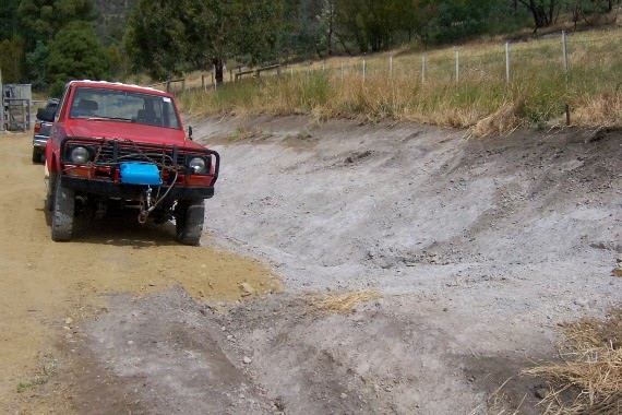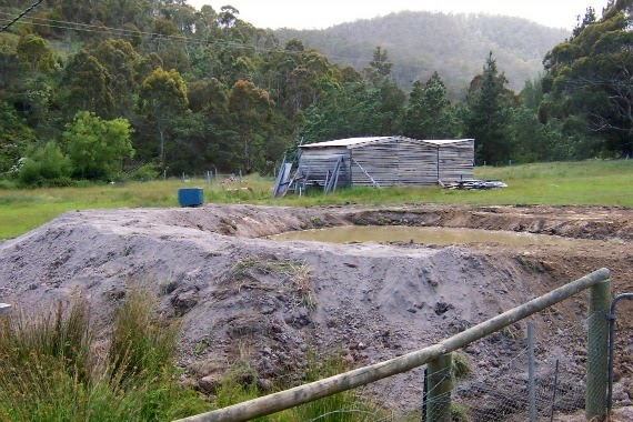 This is what the dam looks like now. Another moonscape. But hopefully, no more leaks. What the guy did was build up the lower side of the dam and scoop out the high side. That way rainwater from the paddock will flow INTO the dam, not around it. It was wierd, but the dam walls were higher on that side and lower on the bottom side. Wierd.