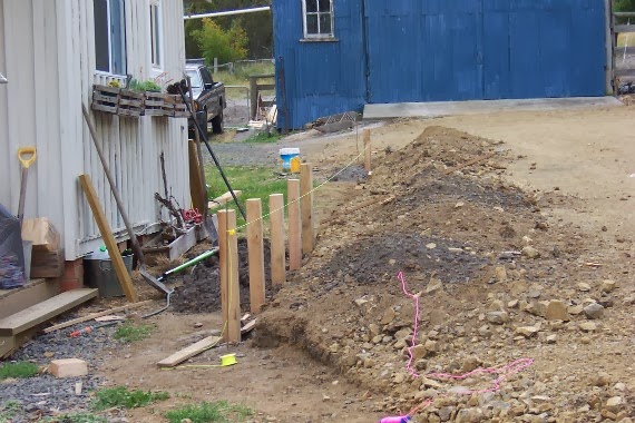 Wayne’s been working really hard on the new retaining wall. This is how it looked yesterday when he stopped for the day.