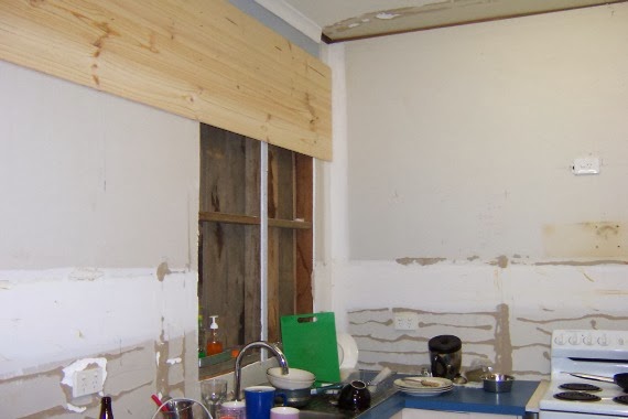 Handyman has been here and has been working but he’s been diverted cause we realized that the power points had to be moved before he could finish pine lining the wall. I mean, he could only work on the 2 walls as it was as we’re waiting on the power company to move the power so he can put in the new window before he can pine line the front wall…