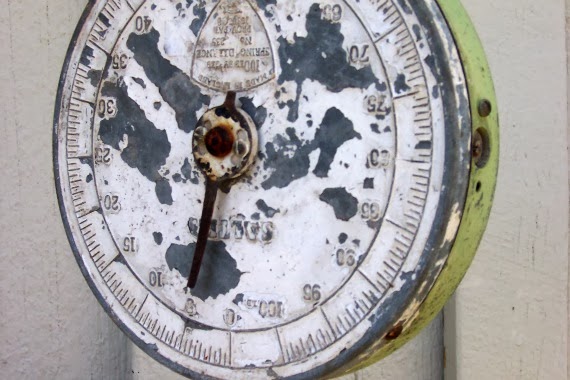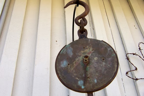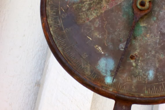 I also found these two old scales to add to my collection. (Anything over 3 is a collection and I now have 4 of the hanging type and 5 of the table type scales). This first is wonderfully chippy with that lovely old fashioned green on the back.