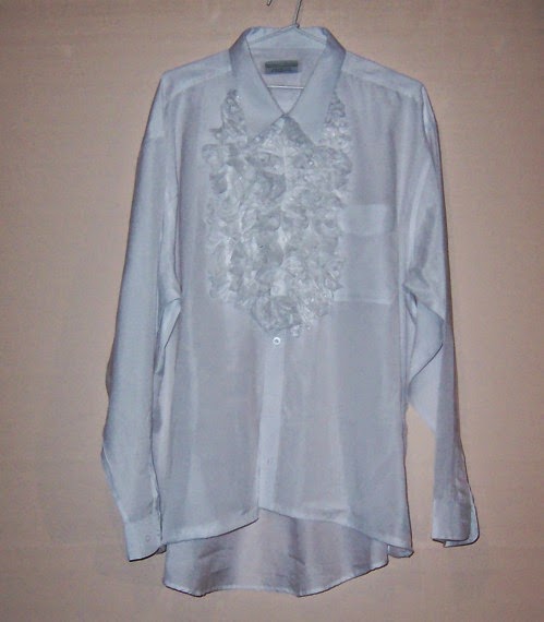 I adapted a white shirt for the magic rabbit costume. All I did for this one was add ruffles of wide lace ribbon.