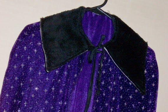 I also found this purple cape which had a silver collar that made it look very ‘magician’-like. I put some fake black fur on the collar to make it a bit more regal.