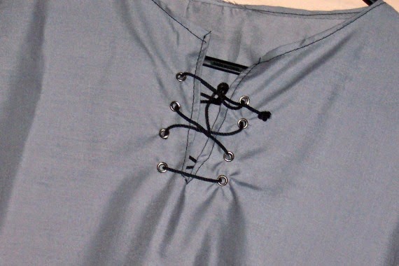 I bought myself one of those eyelet tools and a pack of eyelets in different colours for the lace up front which is a requisite for tunics. Took a few monumental fails putting on the eyelets but eventually I managed to figure out how to use the tool which came without instructions (not even those translated from Chinese to Russian to Swedish and then to English). Not the neatest eyelet/lace up setup I’ve ever seen, but hey… I blame the thin cotton fabric, the fact that I have no patience and no hand strength.