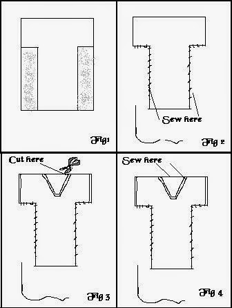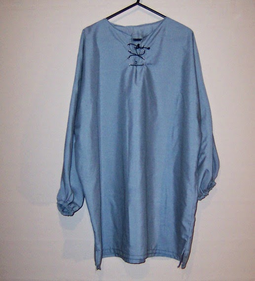 So, using some plain grey cotton fabric from my stash, I made the simplest tunics I could. Basically I laid the fabric out in half and cut out a T, along the lines of this pattern: