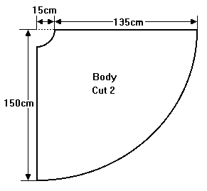 I made the cape using the simplest template, basically the same one I used to make full circle skirts in my rock’n’roll dance days: