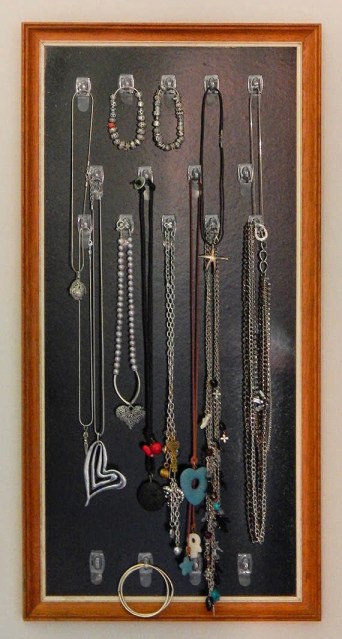 I also didn’t want to make it a statement piece. I like the pretty ideas on Pinterest but didn’t want something that made my jewellery a feature. So I measured the width of the wardrobe and found a long frame I had which would fit on the side. The idea being that it would be there, easy to reach but not on the wall like art.